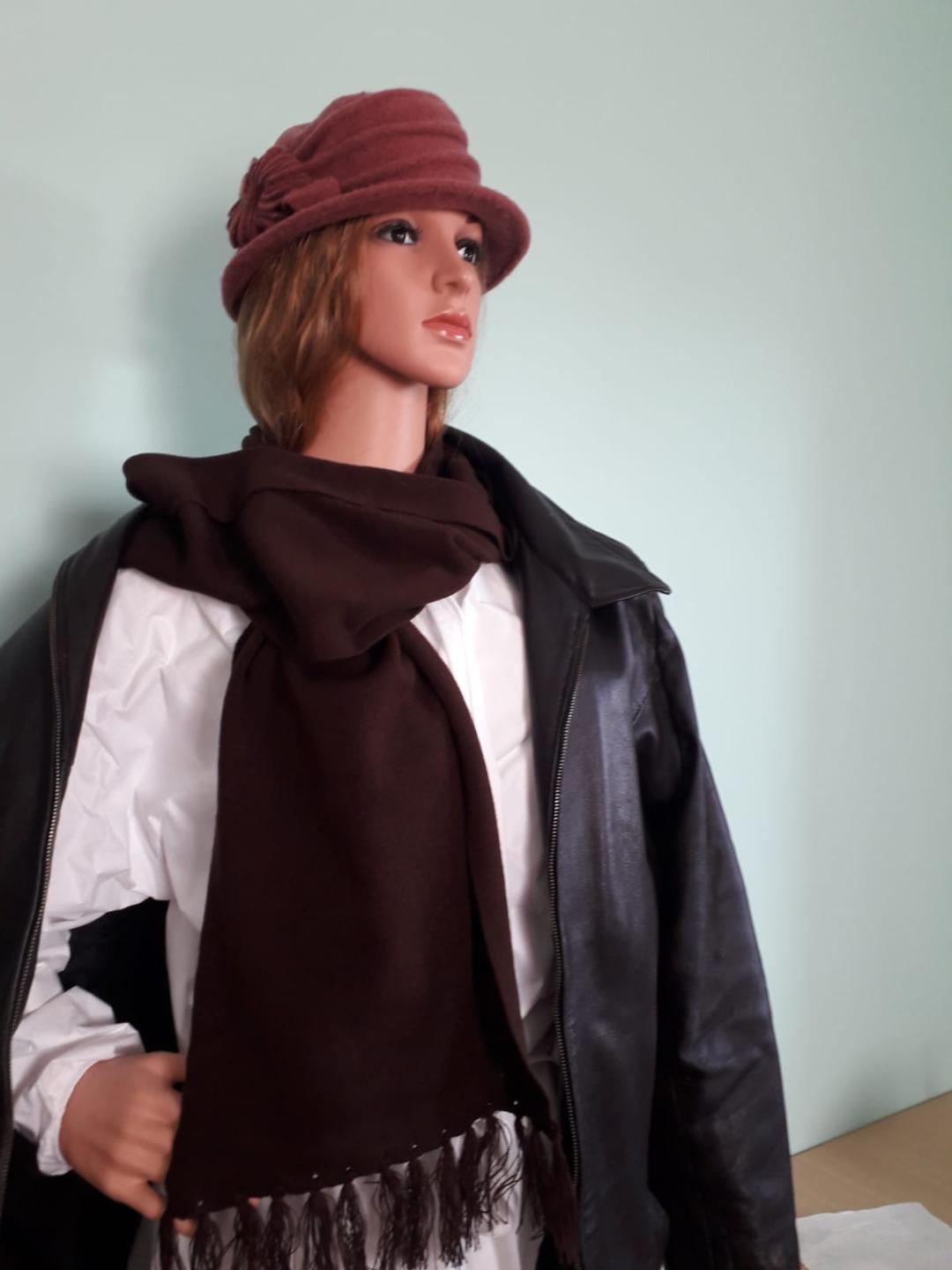 Fulare lungi, cu franjuri lana tip acryl culori : maro, bleu-lungime 130 cm, inclusiv franjuri